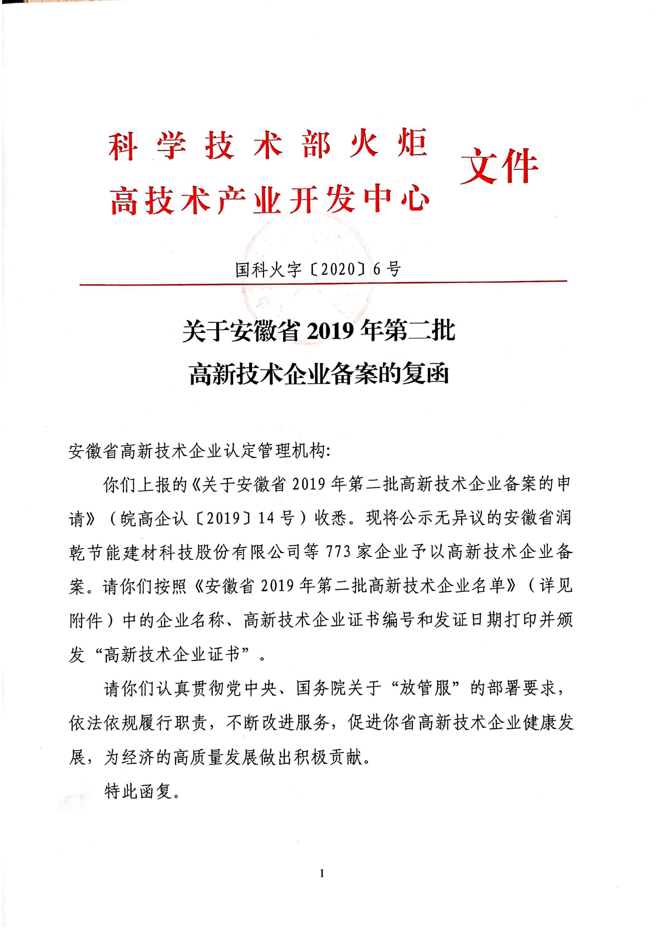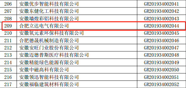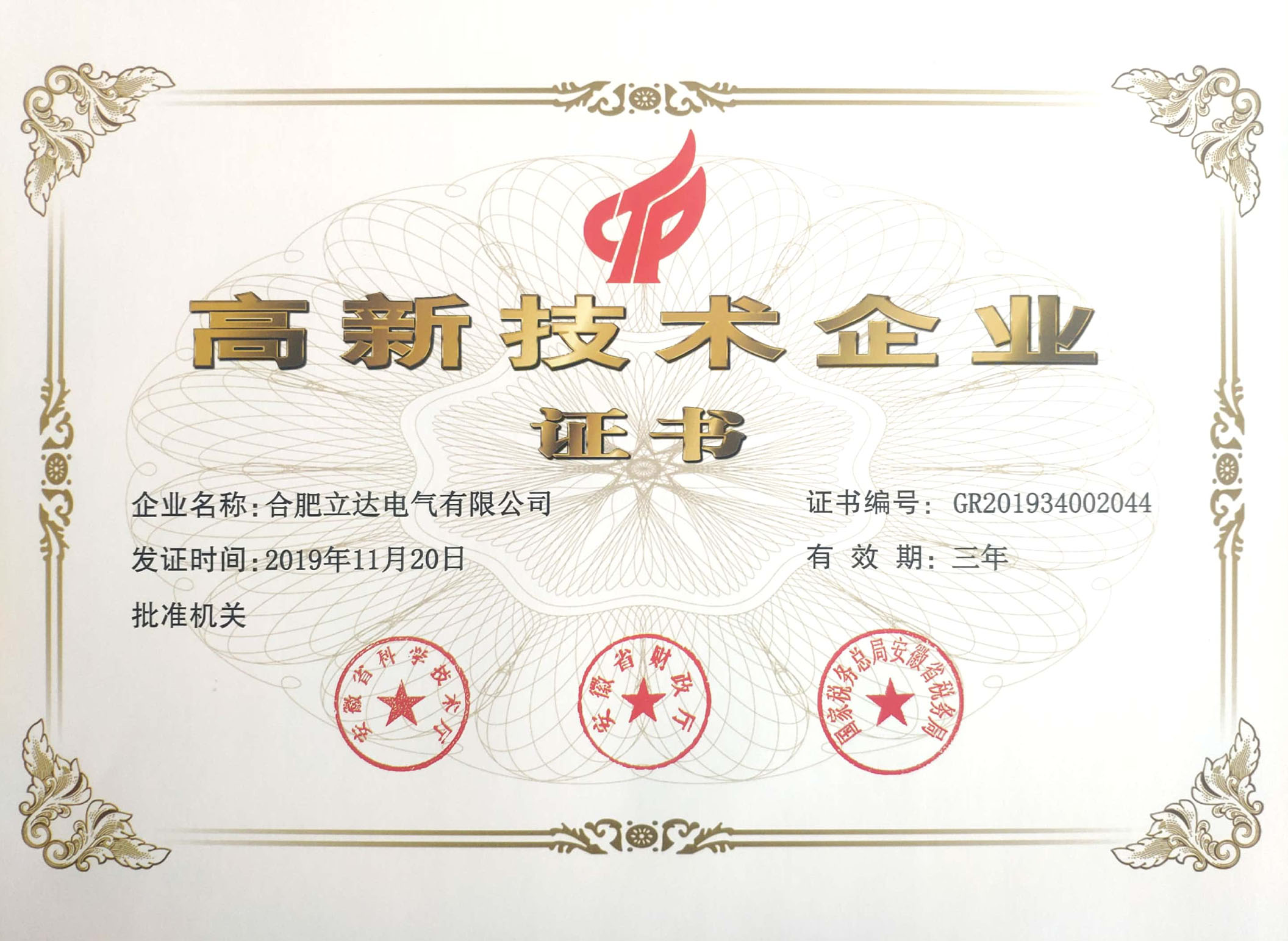 喜訊!熱烈祝賀我公司榮獲“國(guó)家高新技術(shù)企業(yè)”稱號(hào) 2020年1月7日,國(guó)家科學(xué)技術(shù)部火炬高技術(shù)產(chǎn)業(yè)開(kāi)發(fā)中心文件(國(guó)科火字[2020]6號(hào))公布通過(guò)備案的企業(yè),合肥立達(dá)電氣有限公司被認(rèn)定為國(guó)家高新技術(shù)企業(yè),并于近日頒發(fā)了“高新技術(shù)企業(yè)證書”,由此我公司正式邁入國(guó)家高新技術(shù)企業(yè)行列。